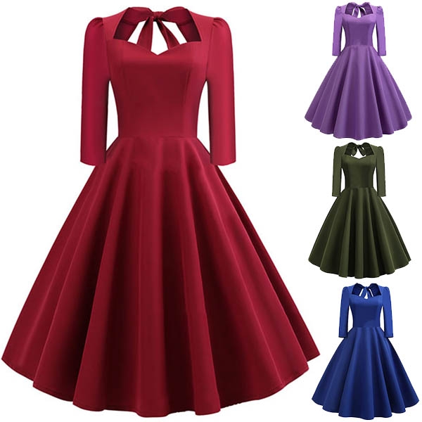 You can showcase your elegant and feminine side through this delicate dress. Boasts a solid color,finished with 3/4 sleeve