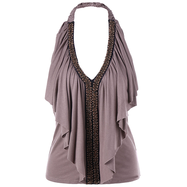 accompanied with backless,v-neck and ruffle design,sexy and alluring. Moreover,the beaded design makes this piece