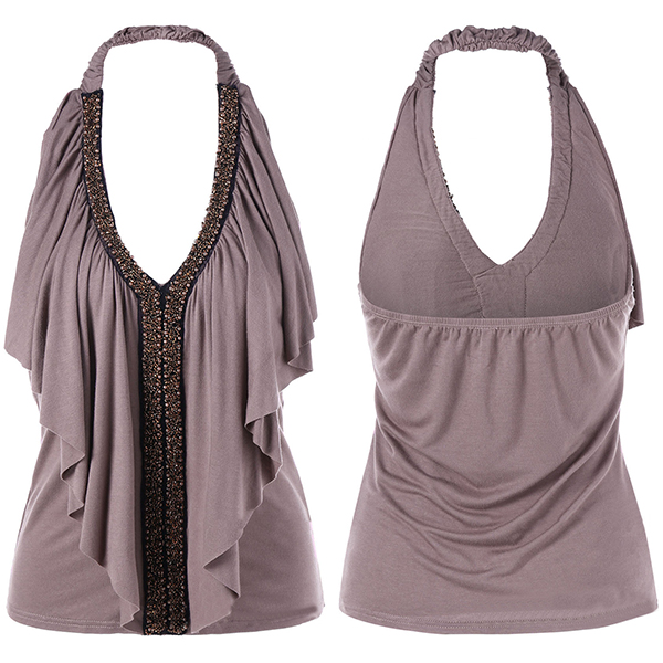The perfect epitome of demure femininity and sultry style, this top will help you arouse more attention. Halter style,