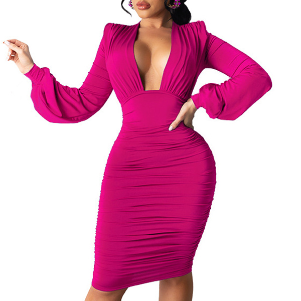 It is a good way to showcase your charming feminine appeal and seductive curve through this dress. Solid color design aims to create a simple but elegant vibe,while the backless,v-neck and dolman sleeve design will give you a more charming look. When wearing this dress for your weekend gatherings,you can easily arouse their attention.