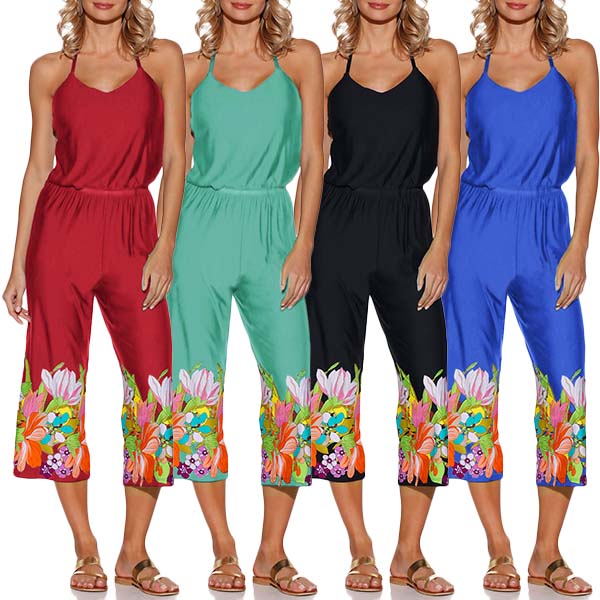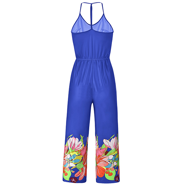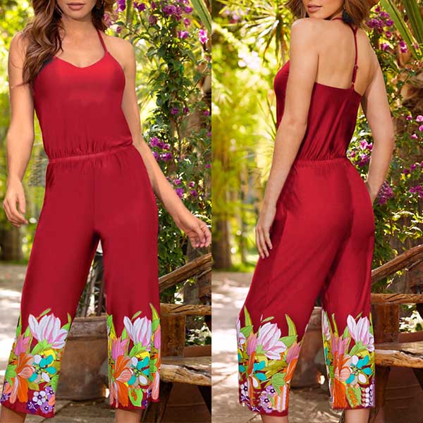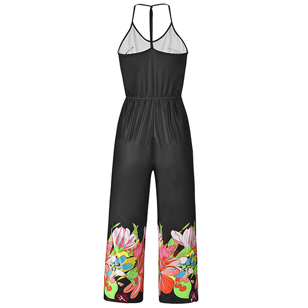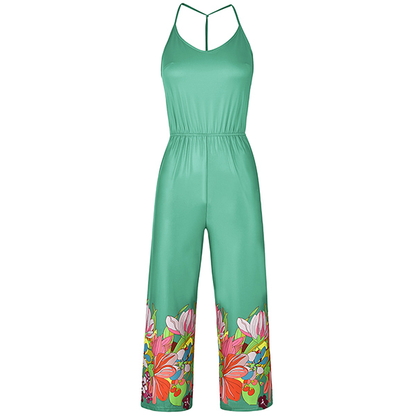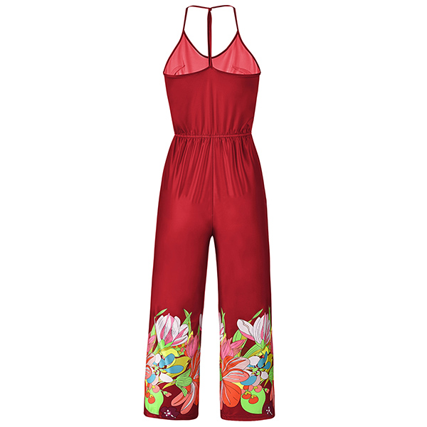 Sling style,finished with backless,v-neck,elastic waist and printed leg opening,sexy and charming.