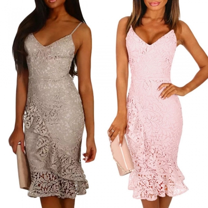 For any last-minute invitation,this lace dress can be your good choice. Sling style,the backless,