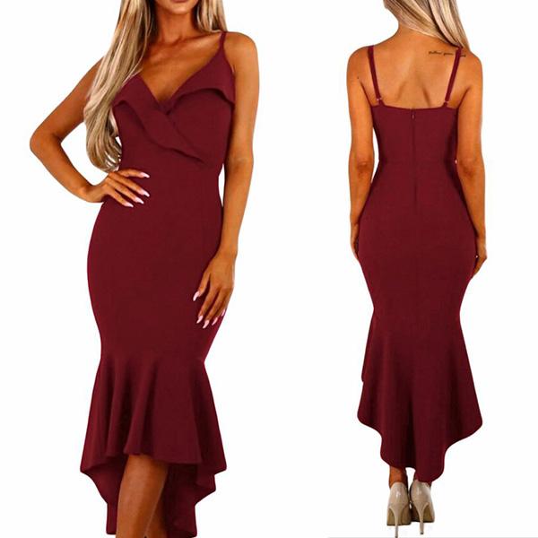 with backless,v-neck and fishtail hem,this dress absolutely can showcase your sexy and alluring side.