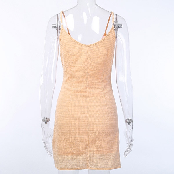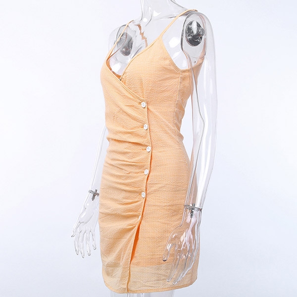 sultry look. Sling style,the backless,v-neck and front-button design make this piece look so sexy