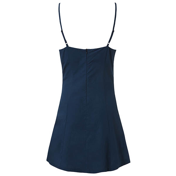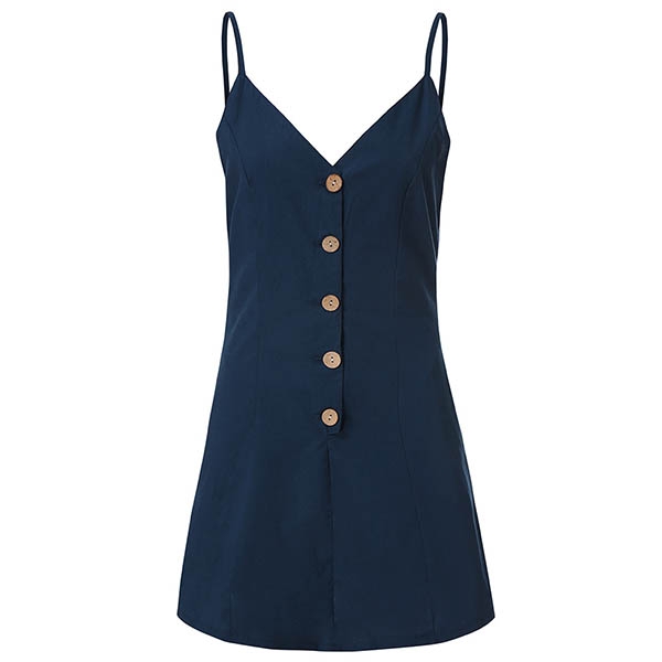 Sexy Backless V-neck Front-button Solid Color Sling Dress