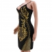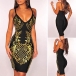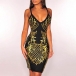 v-neck and a fit silhouette design,this dress will make you look flirty. What's more,the gold-tone printed