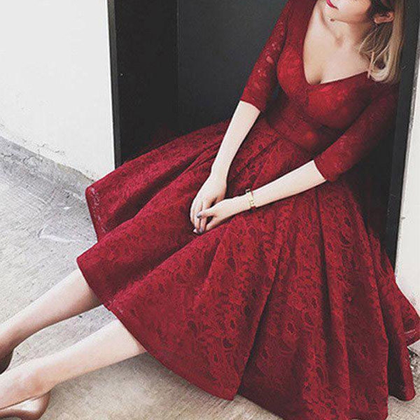 sleeve,backless,v-neck and high waist design,this lace dress knows how to maintain your charm.