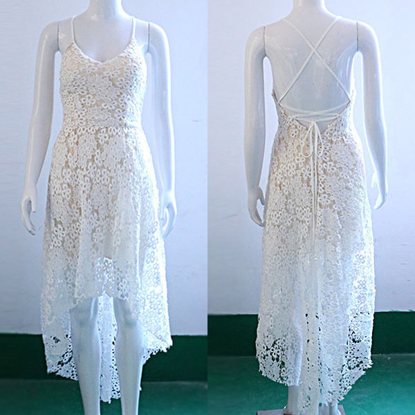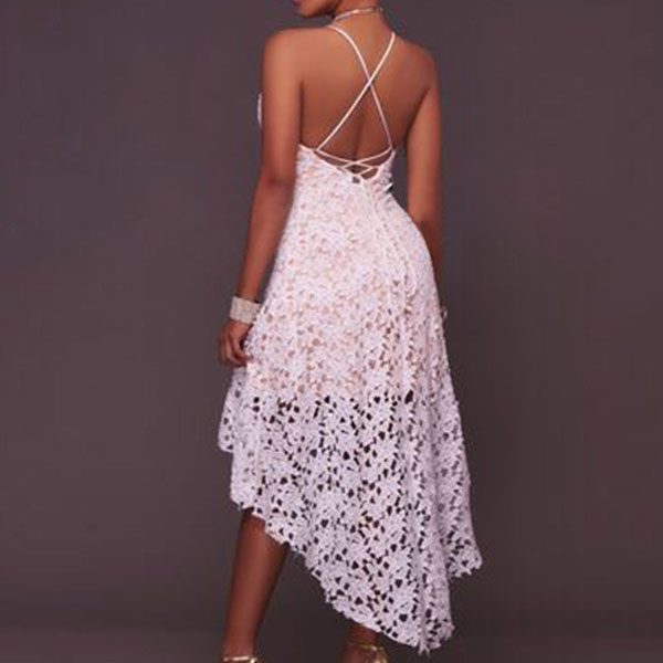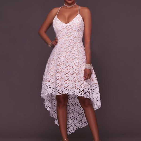 v-neck and a high-low hem,this lace dress of course can portray your sexy and sultry style. You don't need to worry about any