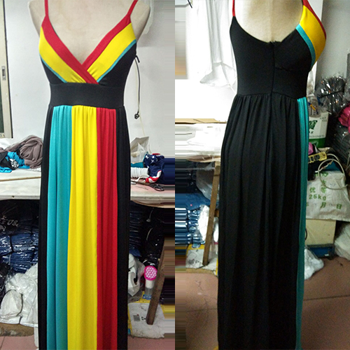 Sling style,with backless and v-neck design,sexy and sultry. And its contrast color design makes