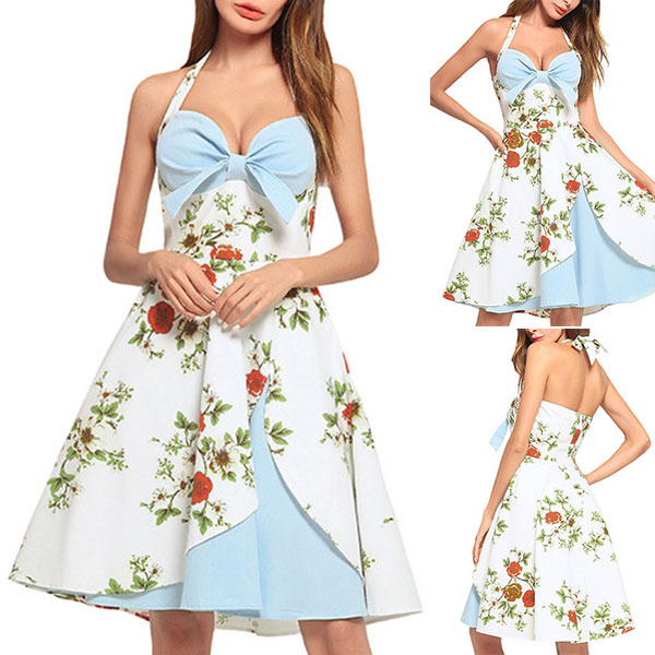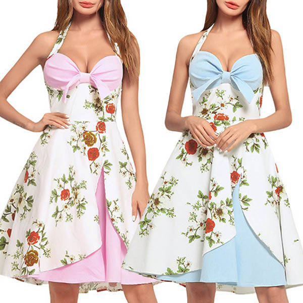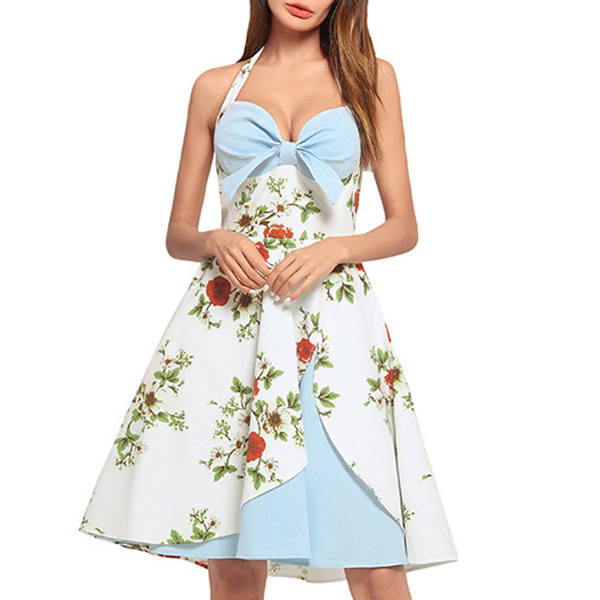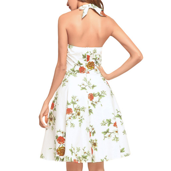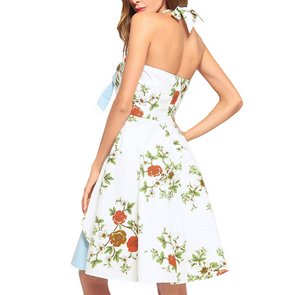When invited to a summer garden party,this printed dress can be your good choice. Halter style,with backless,