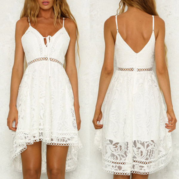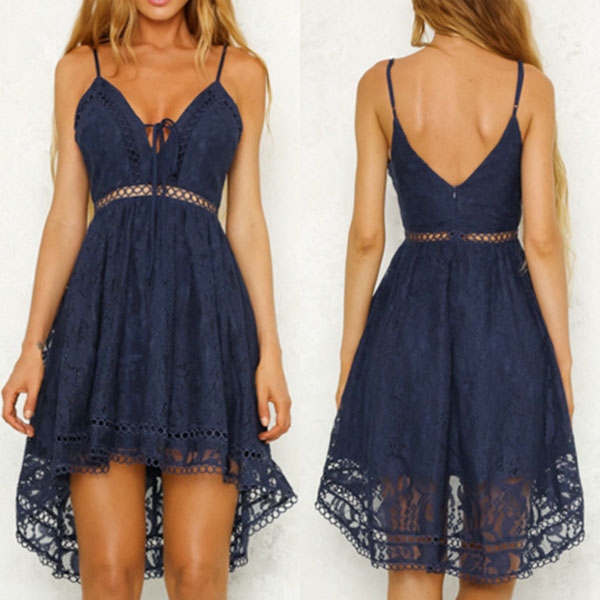 high-low hem design make this lace dress look so beautiful and sexy,while the high waist design can