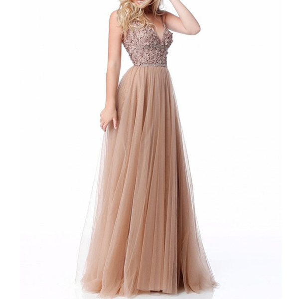 party dress can be your good choice. The backless,v-neck and lace spliced design make this piece