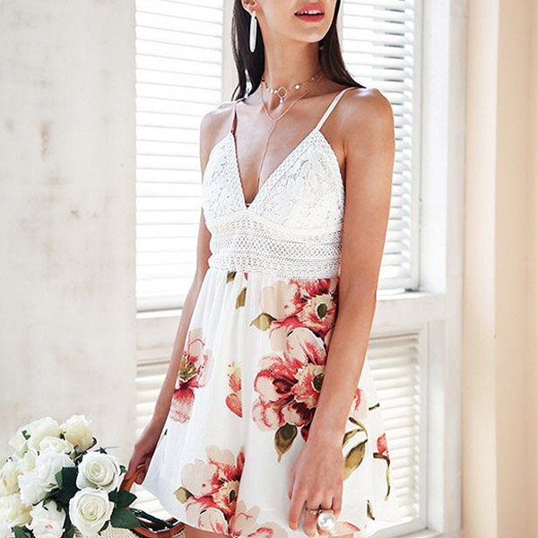 Injecting some flirty appeal on your weekends is easy when dressing up with this romper! Sling style,with backless,v-neck and lace