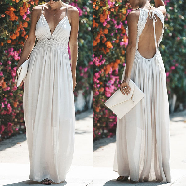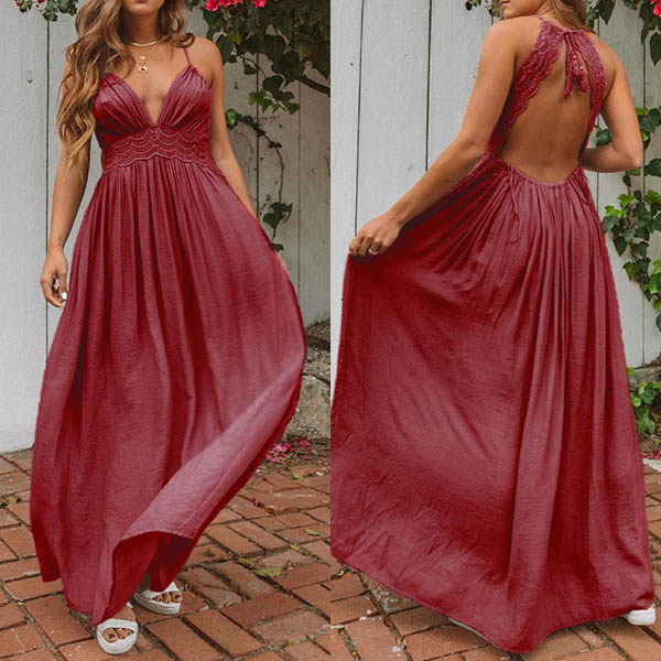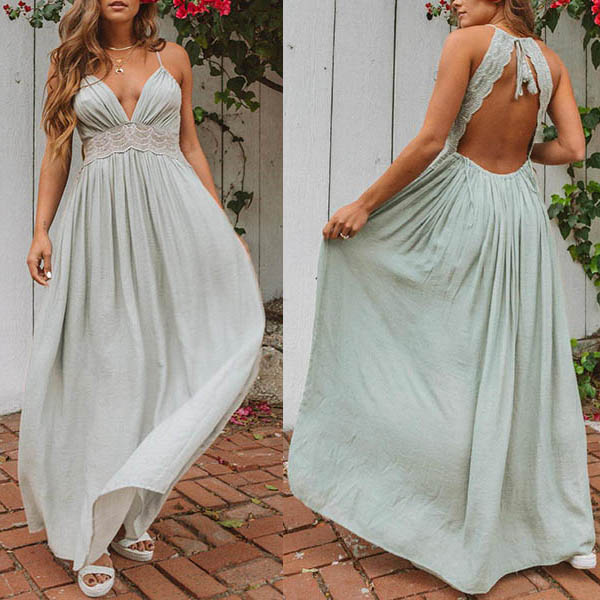 stunning details like backless,v-neck and lace spliced design make this piece look so sexy and sultry,