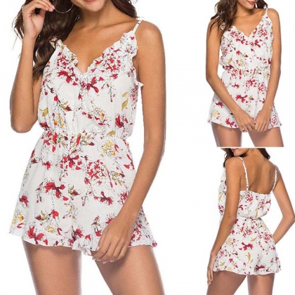 romper! Sling style,boasting vibrant floral print,the backless and v-neck design will lend you a sexier look.