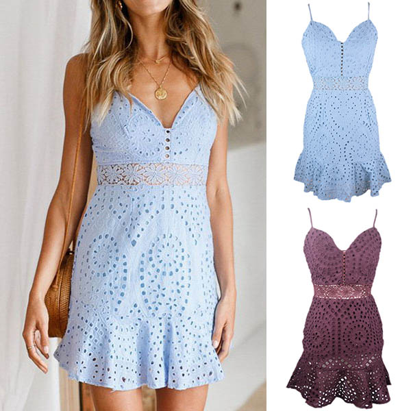 Sling style,the backless,v-neck and ruffle hem design make this piece look so attractive and alluring,