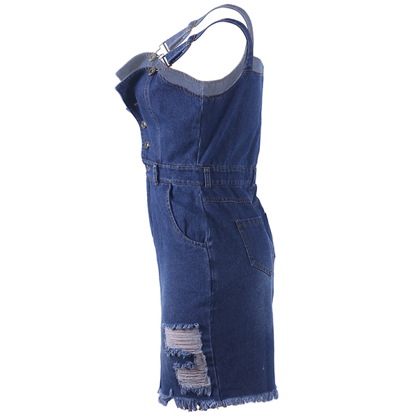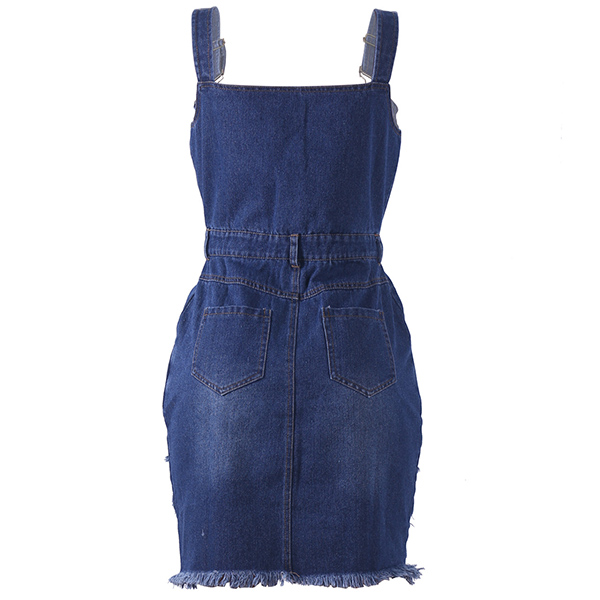 Wanna win more eyes? Then slip into this denim dress. Sling style,with backless,v-neck and ripped