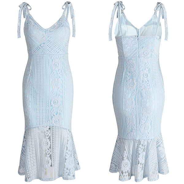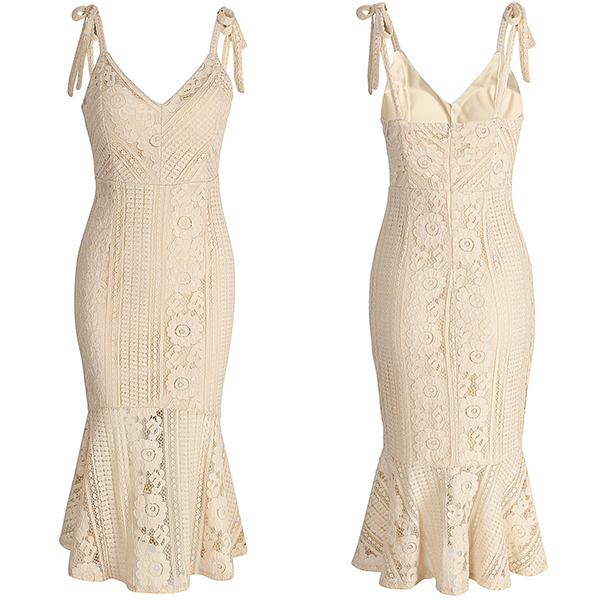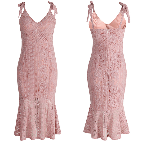 backless,v- neck,high waist and a fit silhouette,this lace dress can showcase your alluring style. A good choice