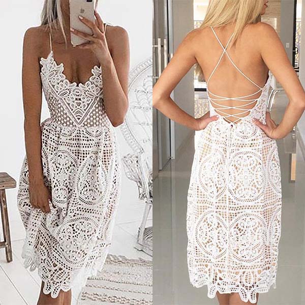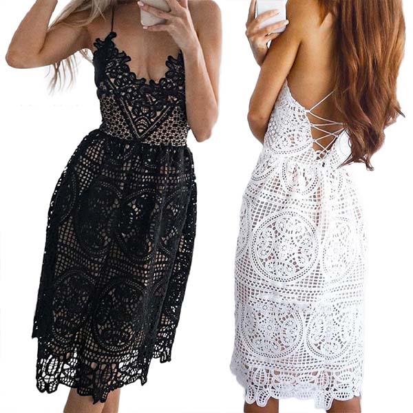 Exude your alluring feminine appeal is as simple as slipping into this lace dress. Sling style,with backless,