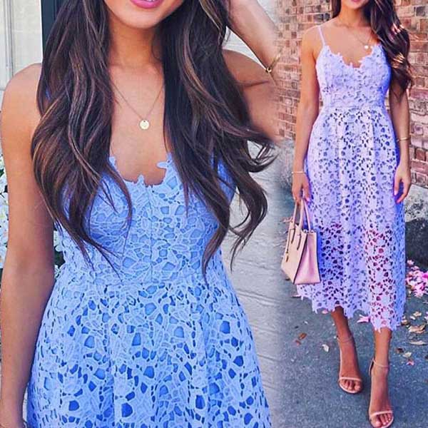 demonstrate your slender figure. For your fancy events,this delicate lace dress can be a good choice.