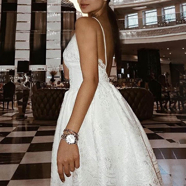 Alluring appeal will appear once you slip into this little stunner. The sling lace dress is designed with backless,