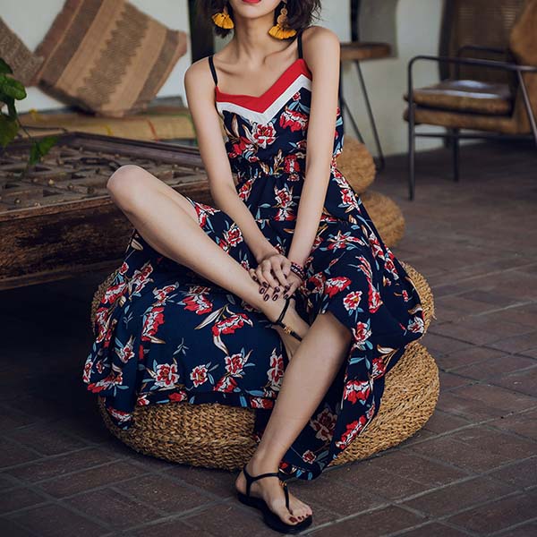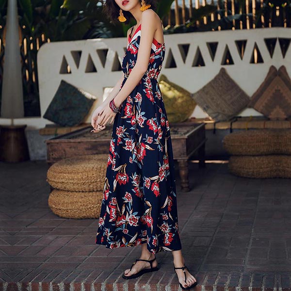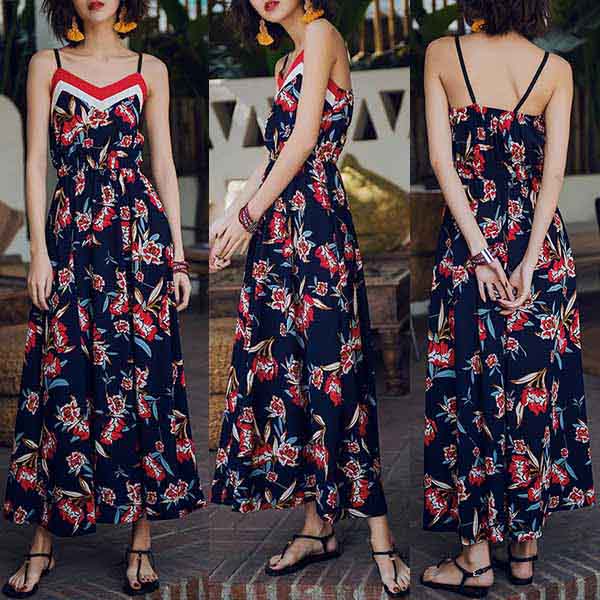 Wanna a sexy and charming beach look? Then turn to this dress for help. Sling style,the backless and v-neck design can