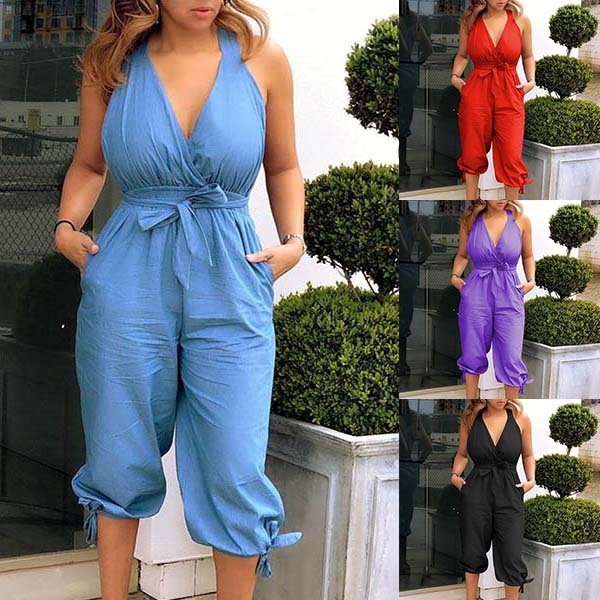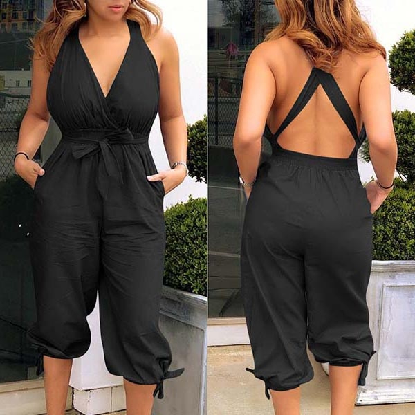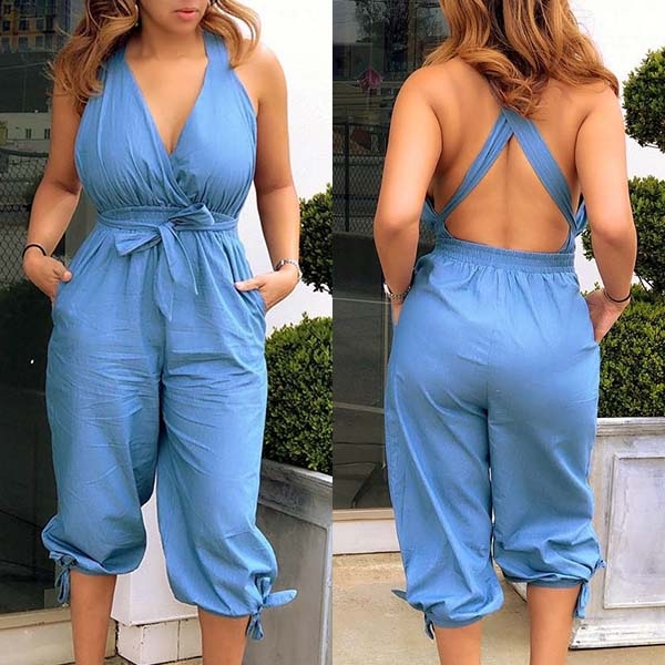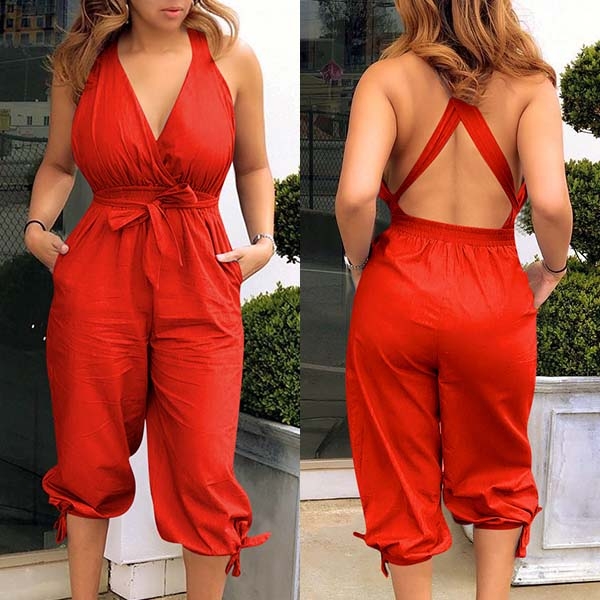 The perfect epitome of femininity, this jumpsuit is sure to help you win more eyes. Halter style,with backless