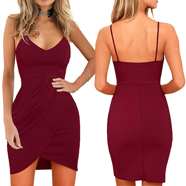 This sling dress boasts a solid color,with backless,v-neck and high waist design,it has a simple design