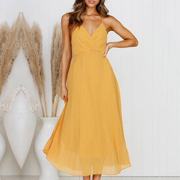 and v-neck design,this dress will offer you a flirty look. And the solid color tone design maintains