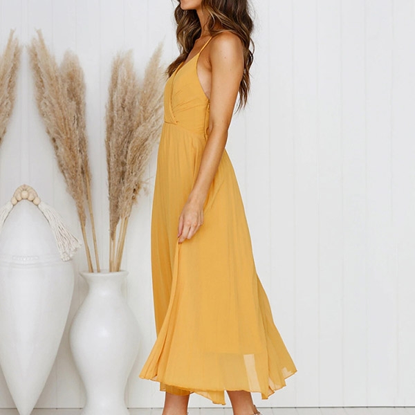 A pleasant sight will appear once you slip into this alluring dress. Sling style,with backless