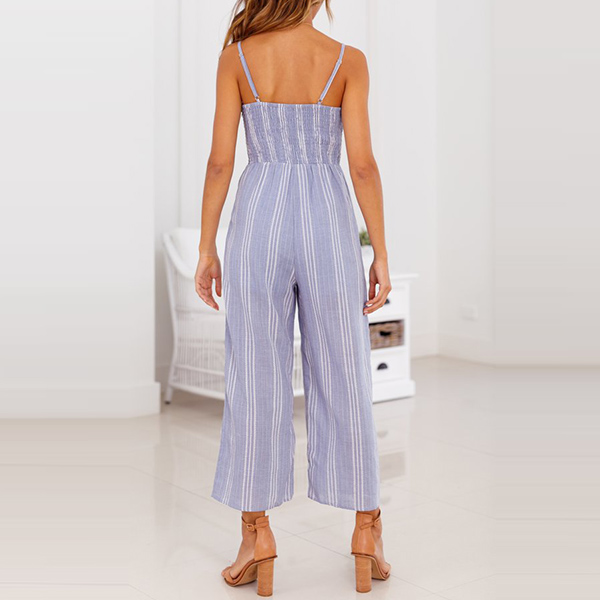 You can maintain your alluring feminine appeal in this jumpsuit! Sling style,with backless,v-neck and striped
