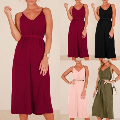 this jumpsuit. Sling style,designed with backless,v-neck,high waist and a wide-leg silhouette,this piece