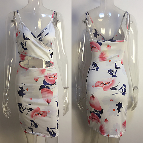 companion. Sling style,boasting a vibrant floral print,with backless,v-neck and hollow out design,