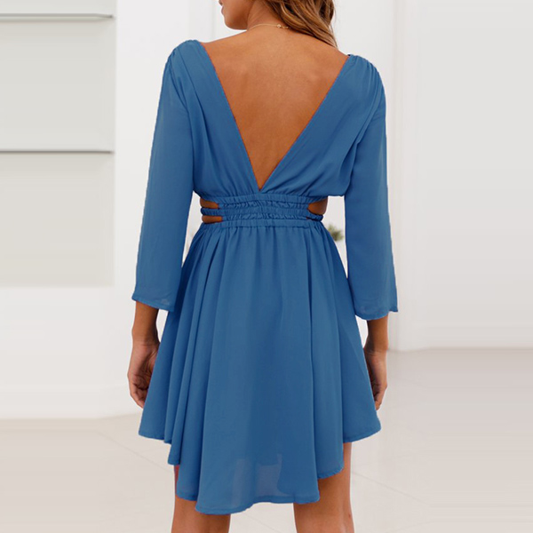 with 3/4 sleeve,irregular he,backless and deep v-neck design,sexy and alluring. And the elastic waist design