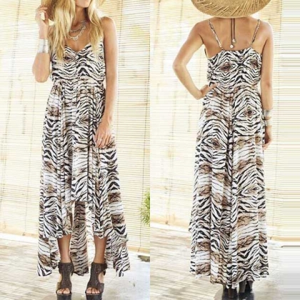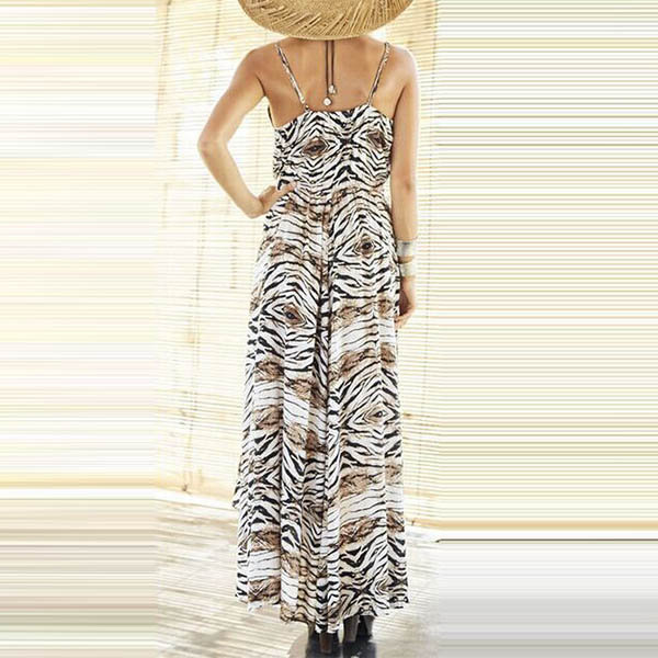 Thanks to the leopard print design you can easily win more eyes when you wear this dress. Sling style,