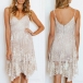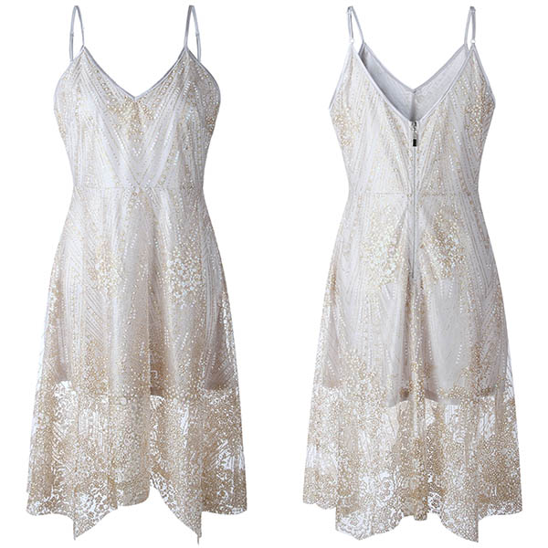 Sling style,with backless,v-neck and an irregular hem design,this dress is sure to give you a beautiful look.