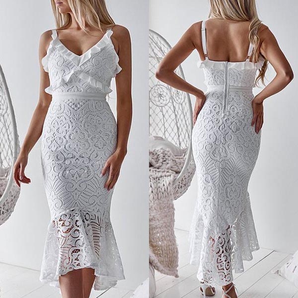 Wanna look stunning at tonight's cocktail party? Then you can slip into this lace dress.