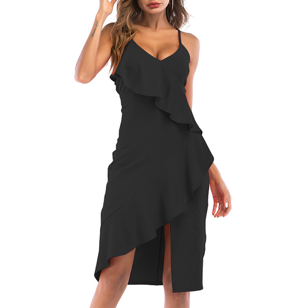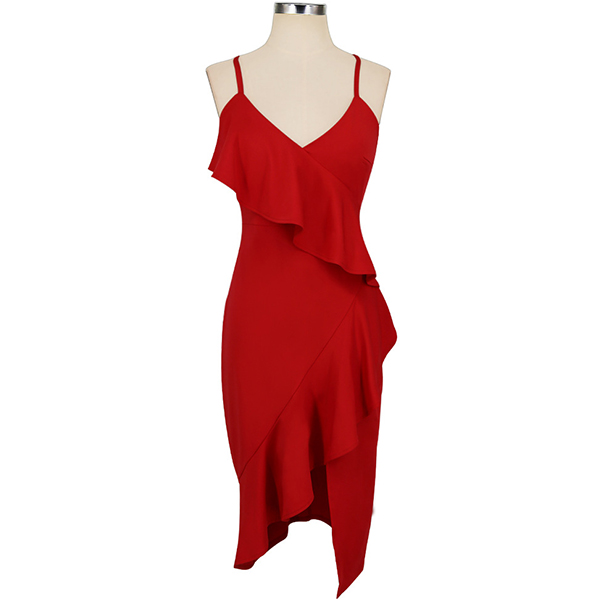 backless,v-neck,irregular hem and ruffle details,this alluring dress can easily make you be a pleasant sight to