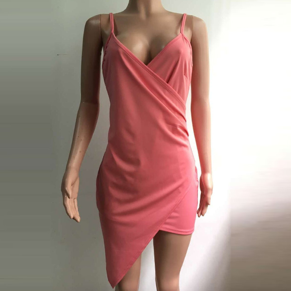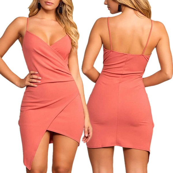 this dress in your team. This sling dress is finished with backless,v-neck and an irregular hem,which