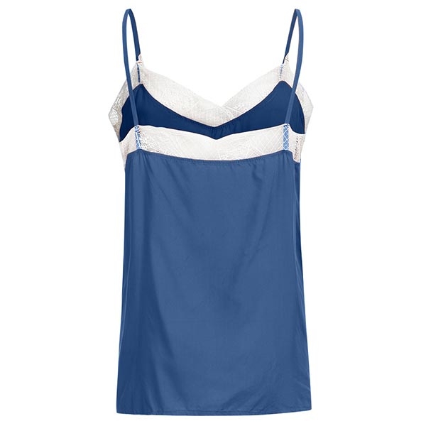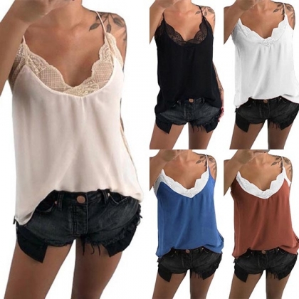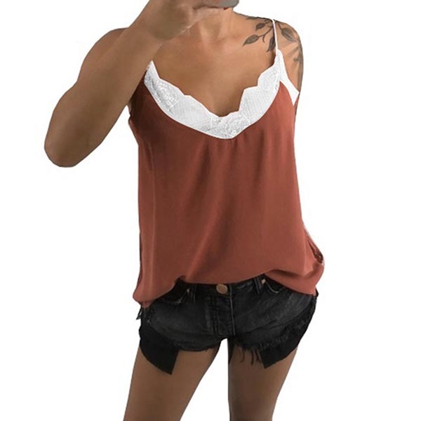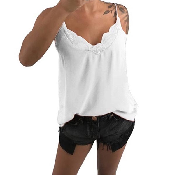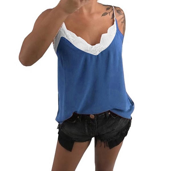 this cami top in your wardrobe. The backless,v-neck and lace spliced design make this