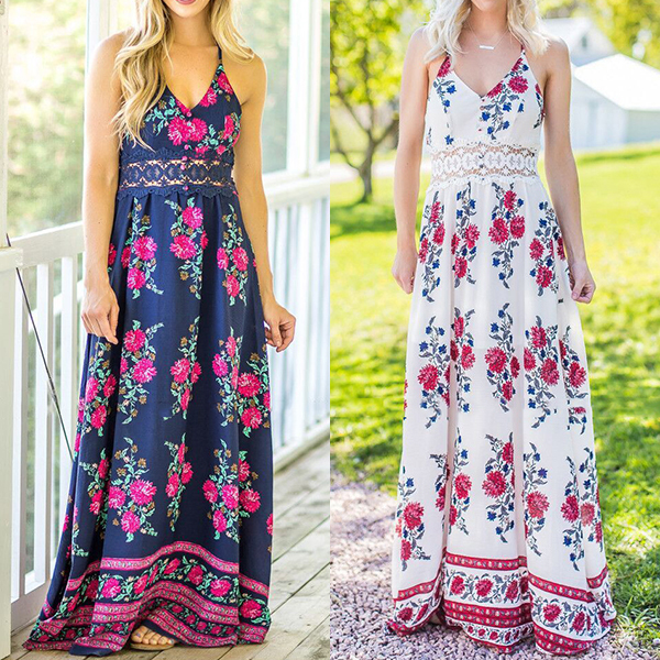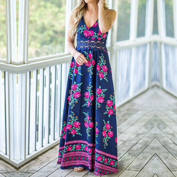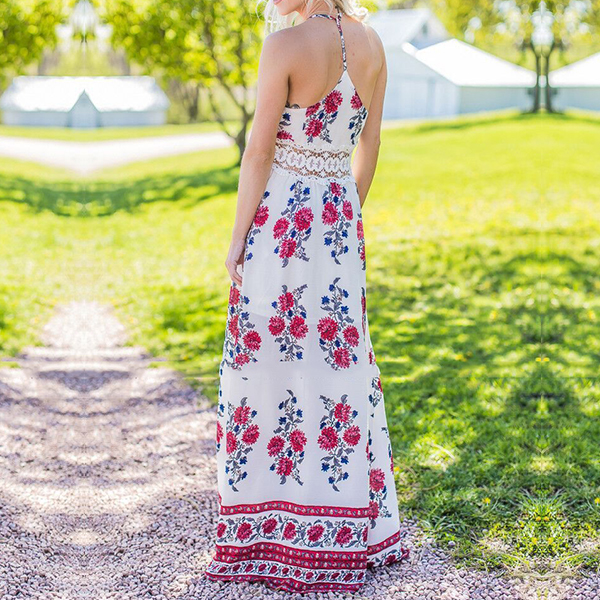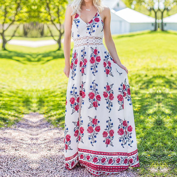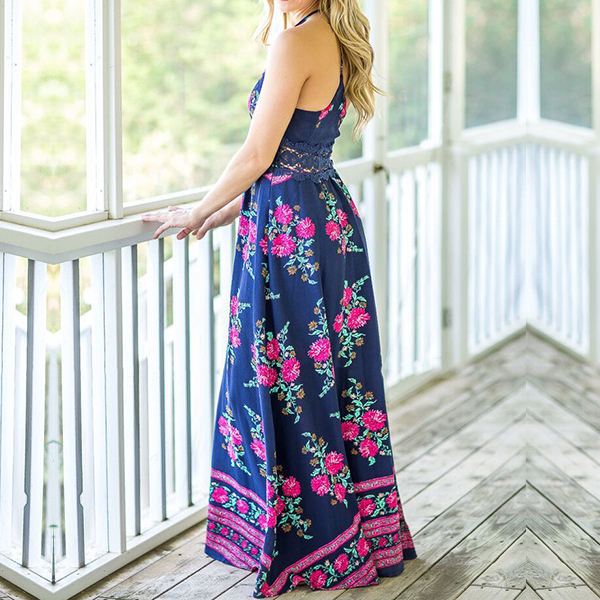 lace spliced high waist a maxi length,sexy and charming. Moreover,its vibrant floral print design lends you some sweet