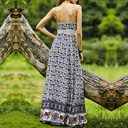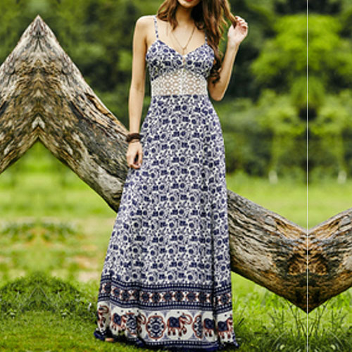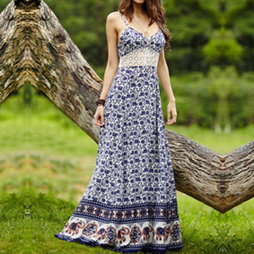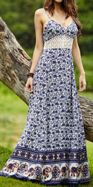 and flirty details such as backless,deep v-neck,lace spliced high waist and maxi length make this