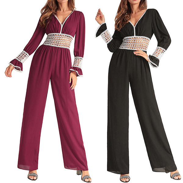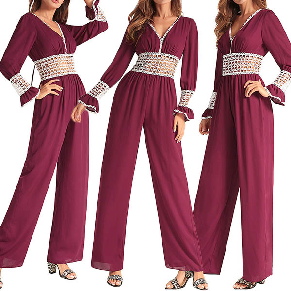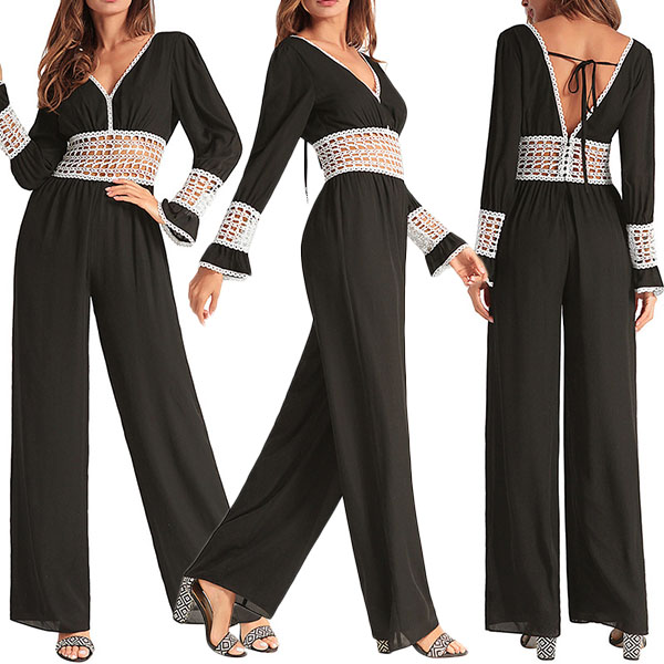 The backless,v-neck and hollow out lace spliced design make this piece look so sexy and sultry,