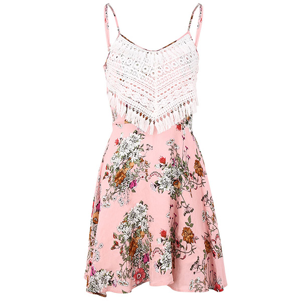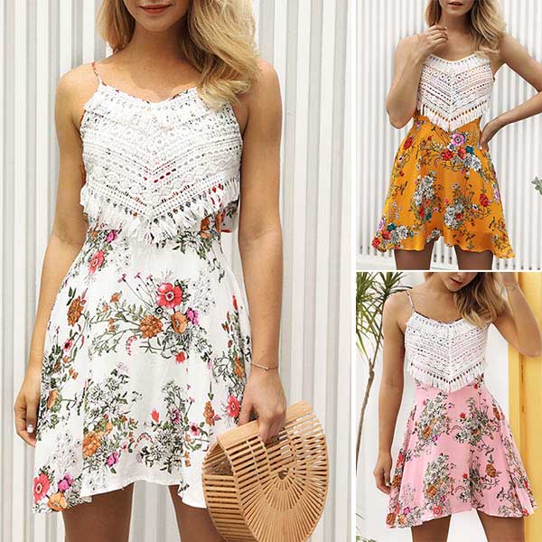 this piece! Sling style,comes with vibrant floral print,with backless,v-neck and lace spliced design,