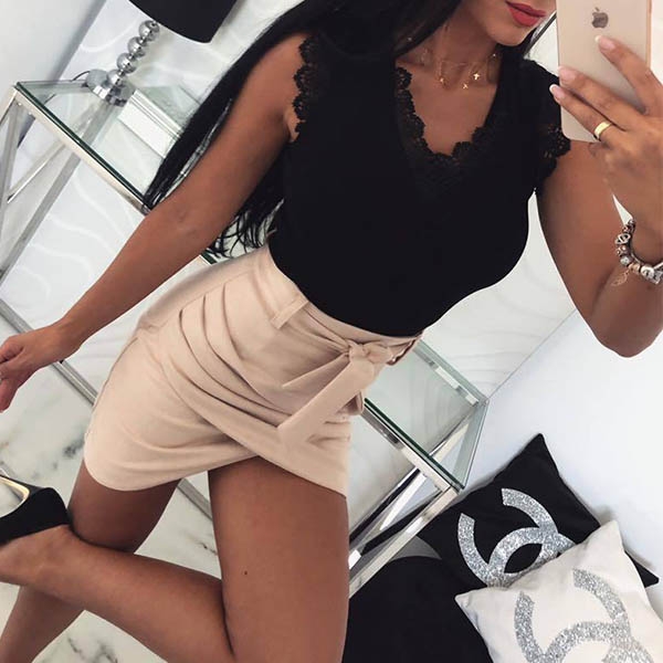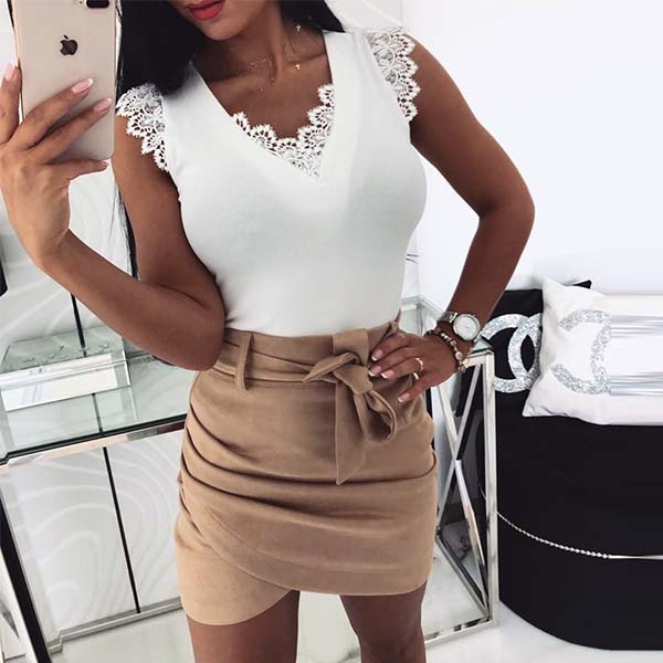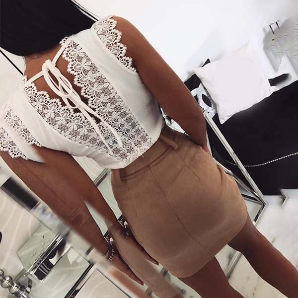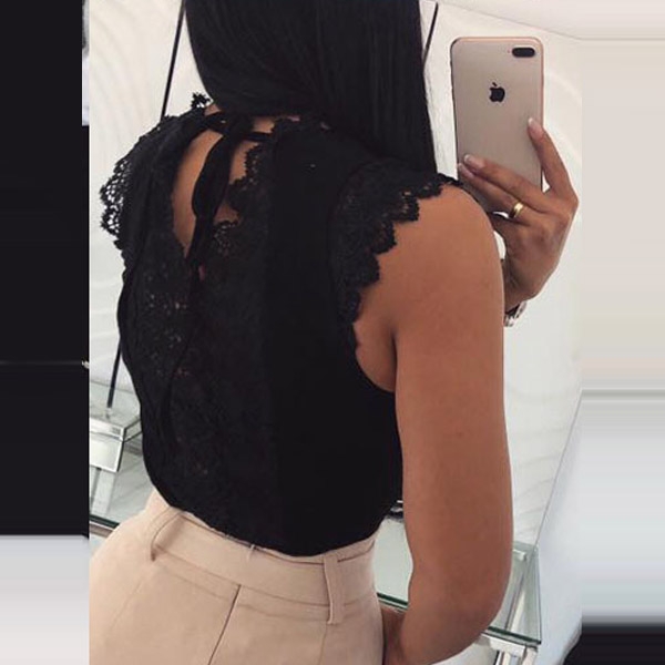 Sexy Backless V-neck Lace Spliced Sleeveless Top