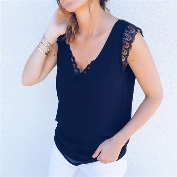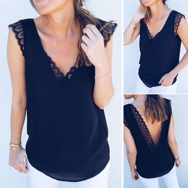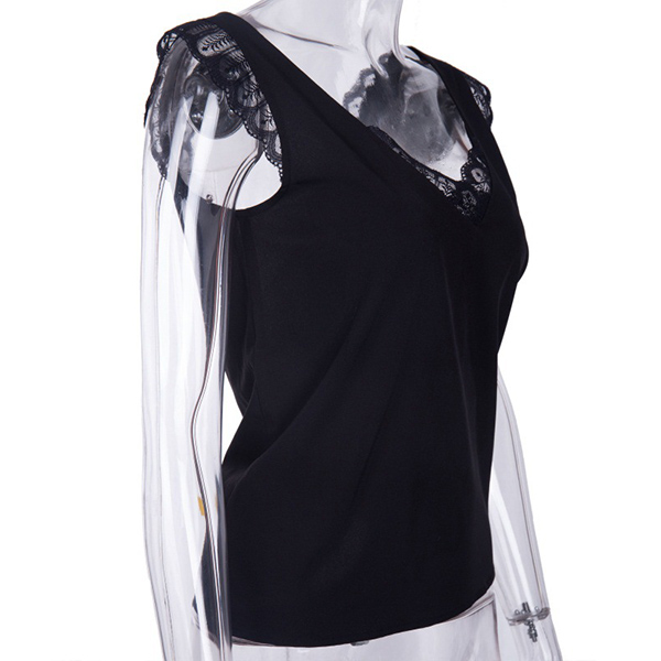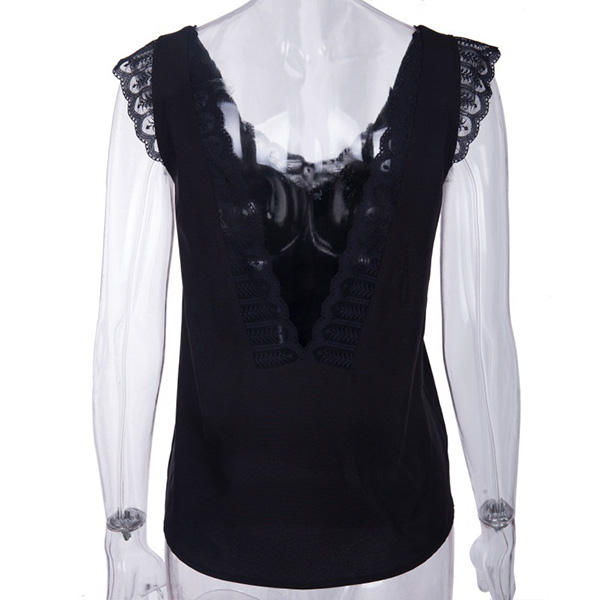 The top comes with a classic yet stylish black tone,accompanied with backless,v-neck and lace spliced