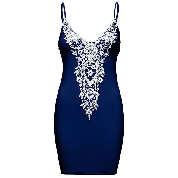 Sling style,with backless,v-neck and lace spliced details,sexy and alluring,and its tight silhouette design