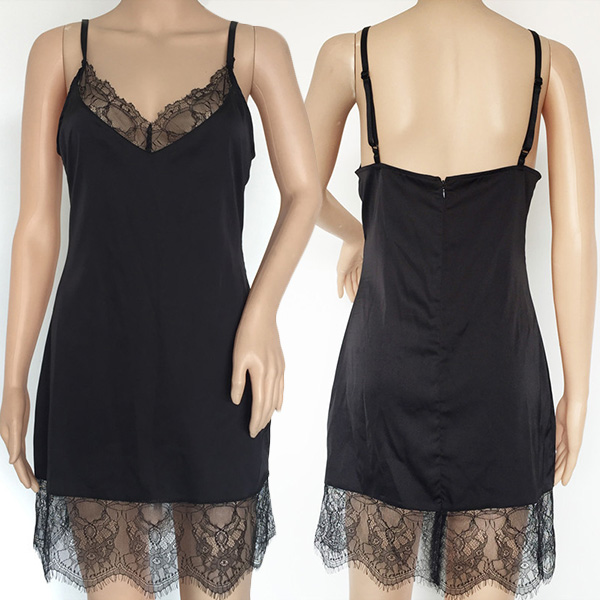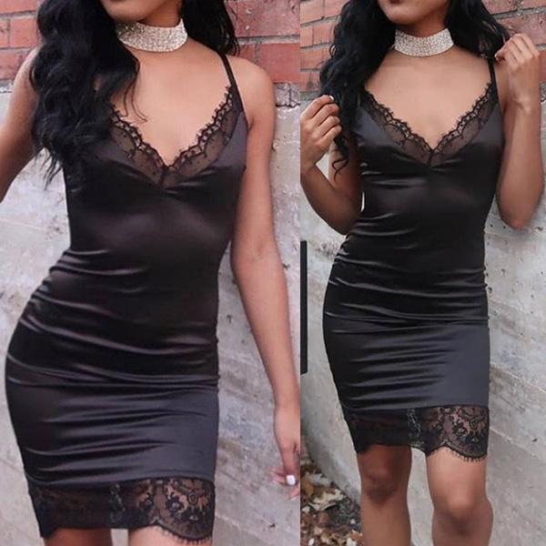 outfitted with backless,v-neck,a fit silhouette and lace spliced details,this dress is a good way to exude your female