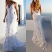 Sexy Backless V-neck Lace Spliced Sling Party Dress