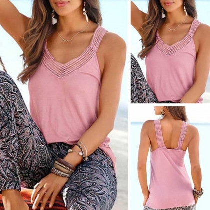This top comes with a sweet pink tone,with backless,v-neck and lace spliced design,this piece